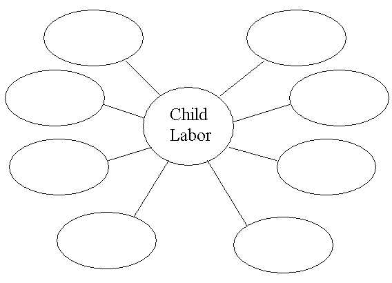 Use a concept map to begin identifying the attributes of the concept of child labor. Put child labor in the center and begin looking for ideas associated with the concept. For example, the following words from the role play will begin to flesh out the concept of child labor: textile mills, factories, coal dust, cave-in, script, company store, machines, whistle, shabby coat, lockout, noisy, dusty, dangerous, factory owner, threads, sorting coal, underground, cutting out coal, bad air, laws to protect children, education. After all of the skits have been presented, discuss the concept of child labor using these words from your concept map. Have students keep the concept map in their notebook and add to it as you increase the depth of your discussions about child labor.