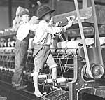 Why were parents often shown in cartoons as sad as the factory owners took their children off to work?