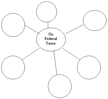 Work with a partner to complete the web. Create a web using the diagram below as a starting point. In the center circle are the words, "No Federal Taxes." Identify things that citizens would do without if there were no federal taxes. Be prepared to share your web with the rest of the class. Add more lines and circles as needed.